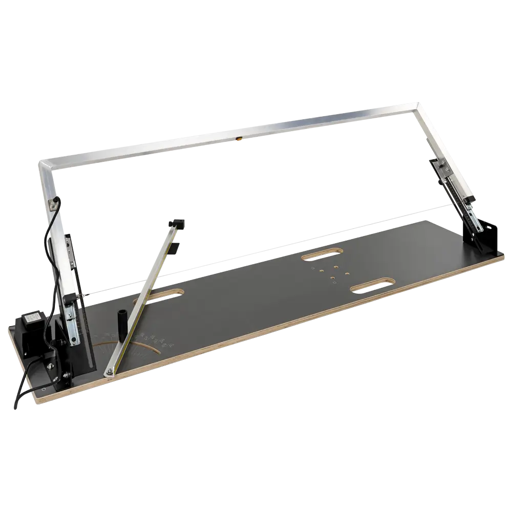 The wire length is the same as on the HWS-Easy! cutter; however, the usable cutting height is increased to up to 380 mm (compared to 330 mm on the HWS-Easy! model). The tabletop surface has a width of 380 mm (290 mm on the HWS-Easy! model), providing additional working space.